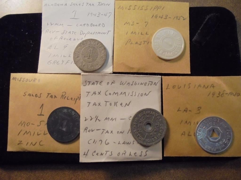 5 Sales Tax Tokens See Description Alabama 1 Mill Cardboard www.icollector.com