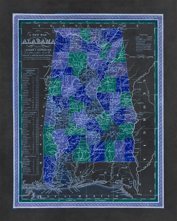 Old Alabama State Map Poster 1800s Vintage Style Print 3 Etsy www.etsy.com