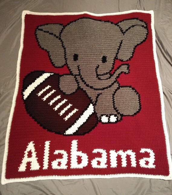 Alabama Baby Elephant W Football Crochet Blanket Afghan Etsy www.etsy.com