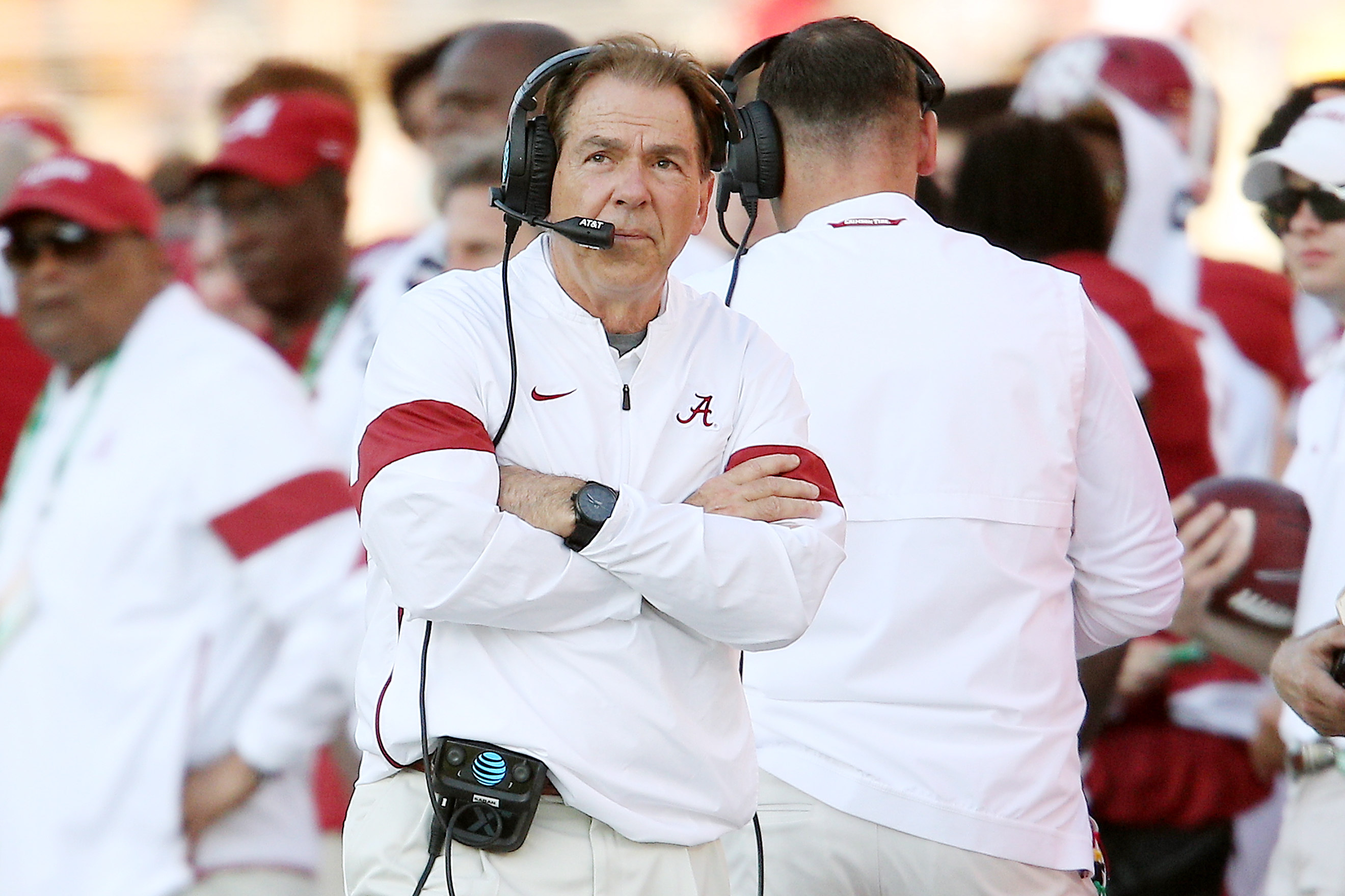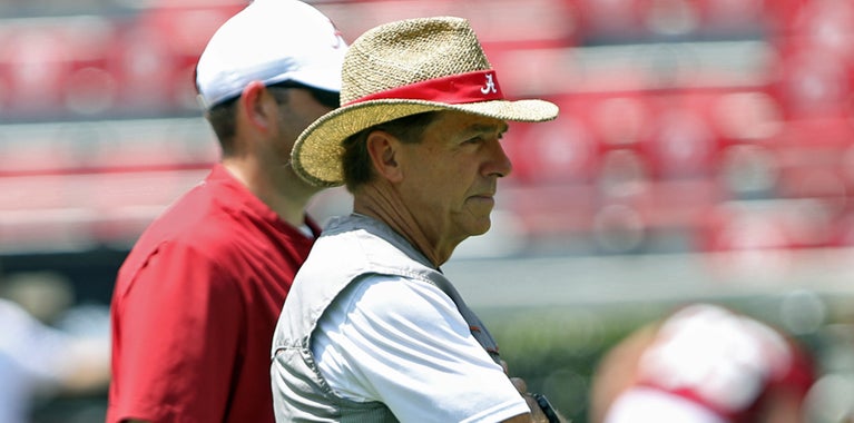 Nick Saban Coaching His Crimson Tide Up Alabama Crimson Tide