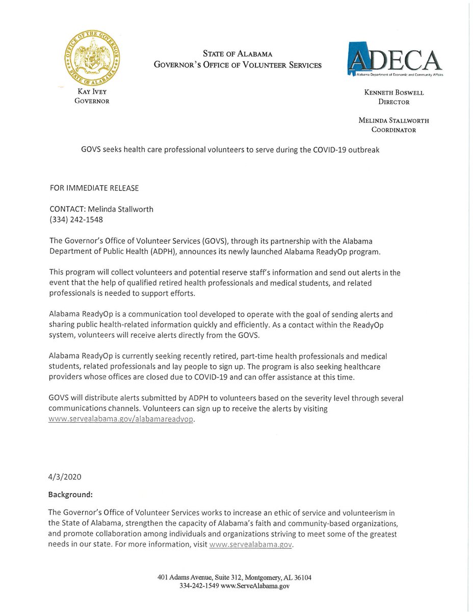 Governor Kay Ivey On Twitter The Governor S Office Of Volunteer Services Has Launched The Al Readyop Program It S An Online System For Managing Public Health Medical Disaster Volunteer Responders Govs Works