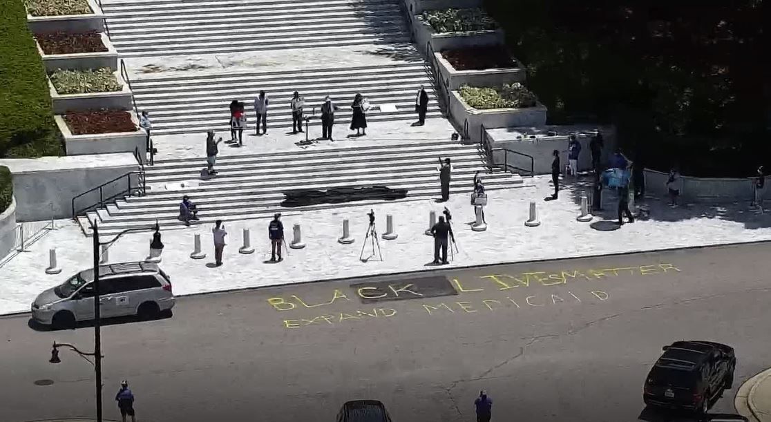 Protesters Paint Black Lives Matter Expand Medicaid In Front