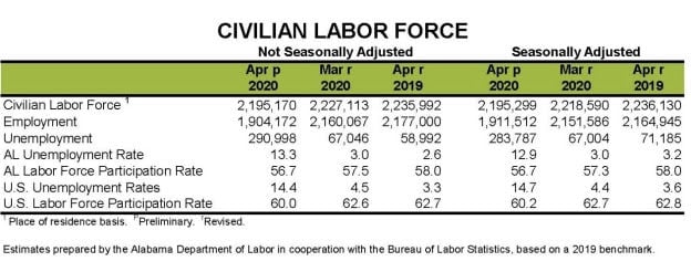 Alabama unemployment rate april 2020. 62448 of those claims are covid 19 related. Marchs unemployment rate was 30. April 17 2020 adol news release for immediate release.