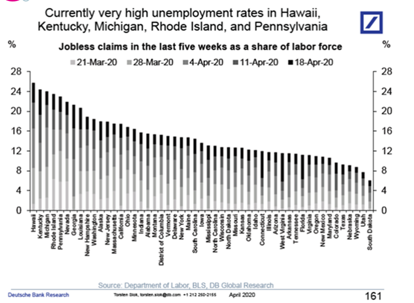 Last months rate represents 283787 unemployed persons an increase of 216783 over the month. 74966 initial claims were filed either online or by telephone during this time period. Aprils rate is the first full monthly measure that incorporates the true extent of the job losses occurring due to the coronavirus pandemic.