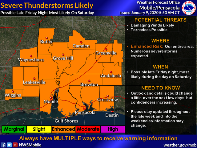 Pensacola Florida Forecast Severe Weather Tornadoes Possible Saturday