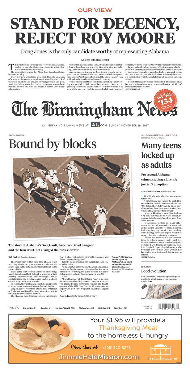 Michael Clay Carey On Twitter Alabama Media Group Newspapers Took A Strong Editorial Stand Today Front Page Above The Nameplate Editorials In Birmingham Huntsville Mobile Encourage Readers To Reject Roy Moore Aldotcom Https T Co Qguavv6qpt