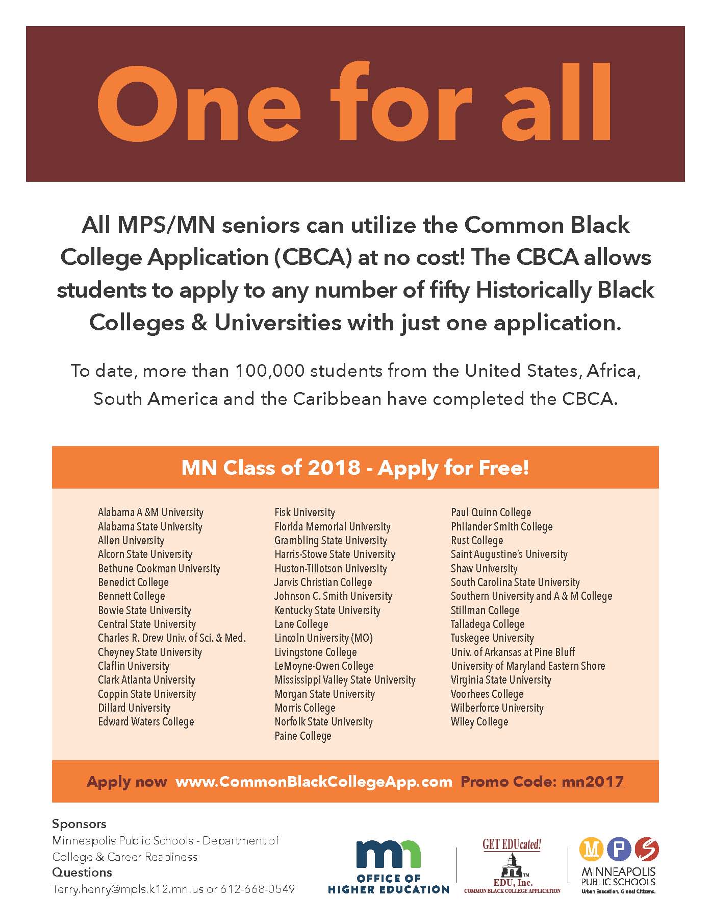 Mps Ccr On Twitter Attention Minnesota Hs Seniors Apply To 50 Hbcu S With One Application For Free Thank You Mnofficehied For Your Partnership Https T Co Sygzgctube