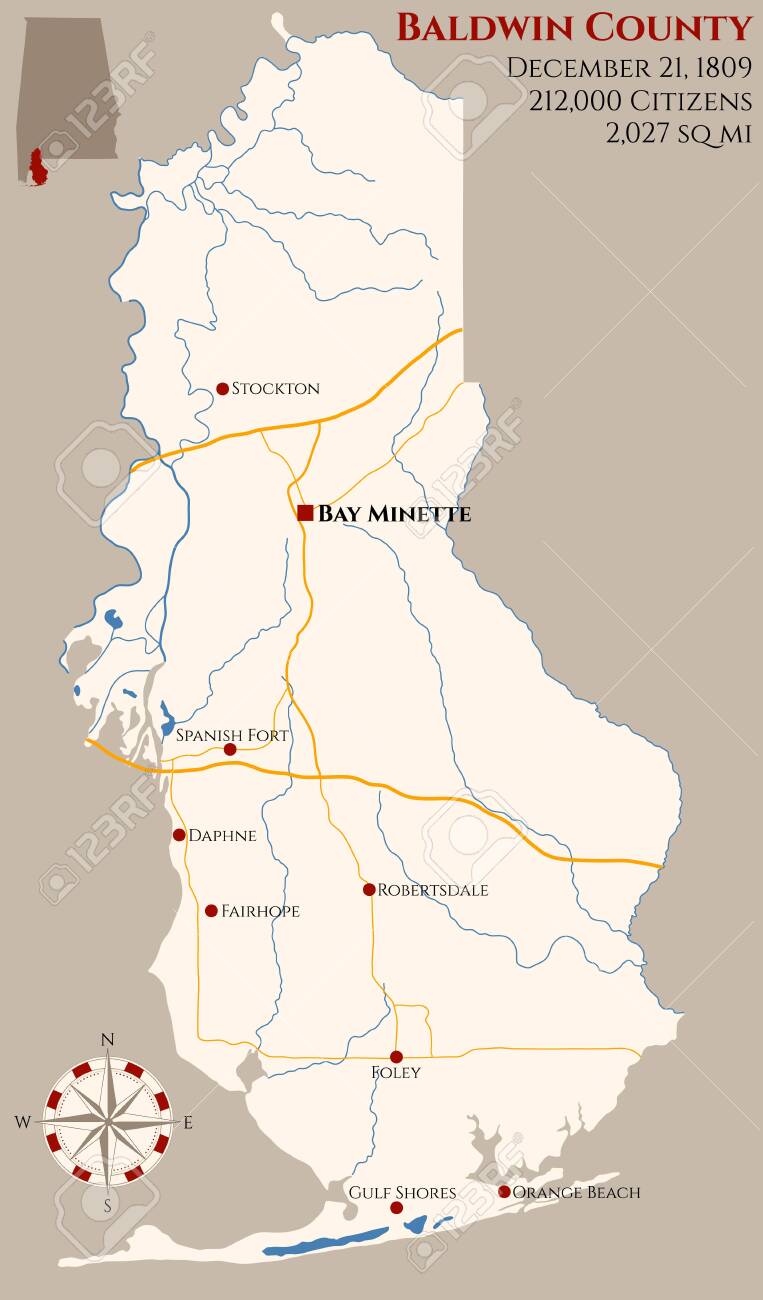 Large And Detailed Map Of Baldwin County In Alabama Usa Royalty Free Cliparts Vectors And Stock Illustration Image 117795889