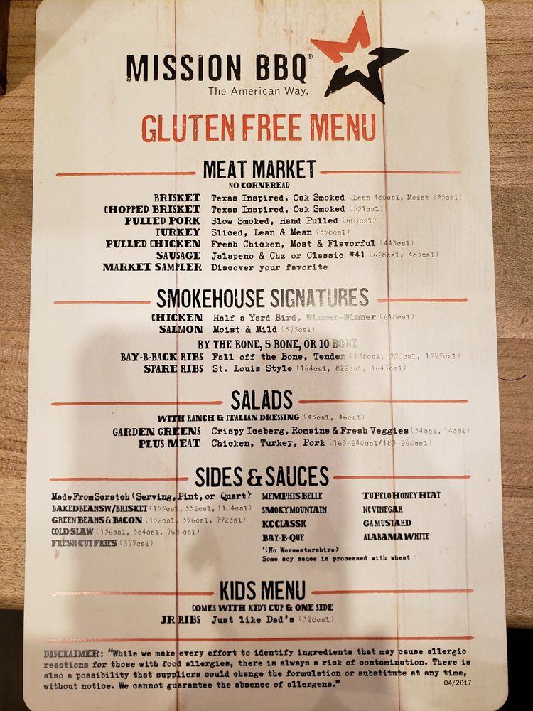 Extensive Gf Menu Photo From Mission Bbq