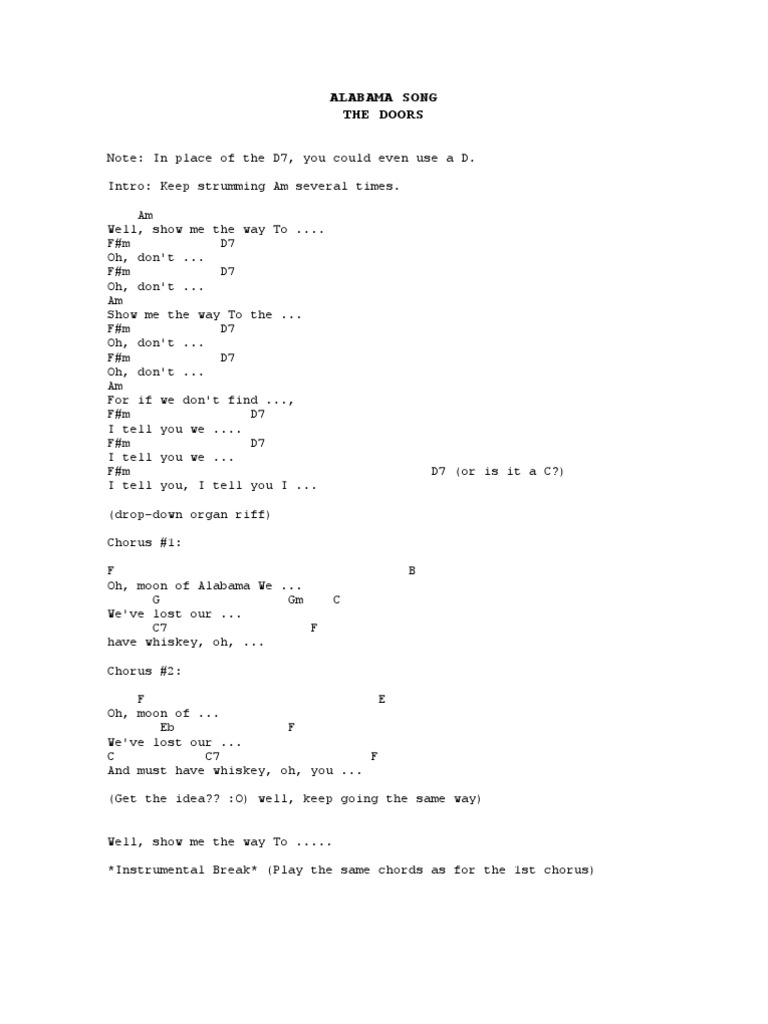 David Bowie Alabama Song Sheet Music Pdf Notes Chords Rock