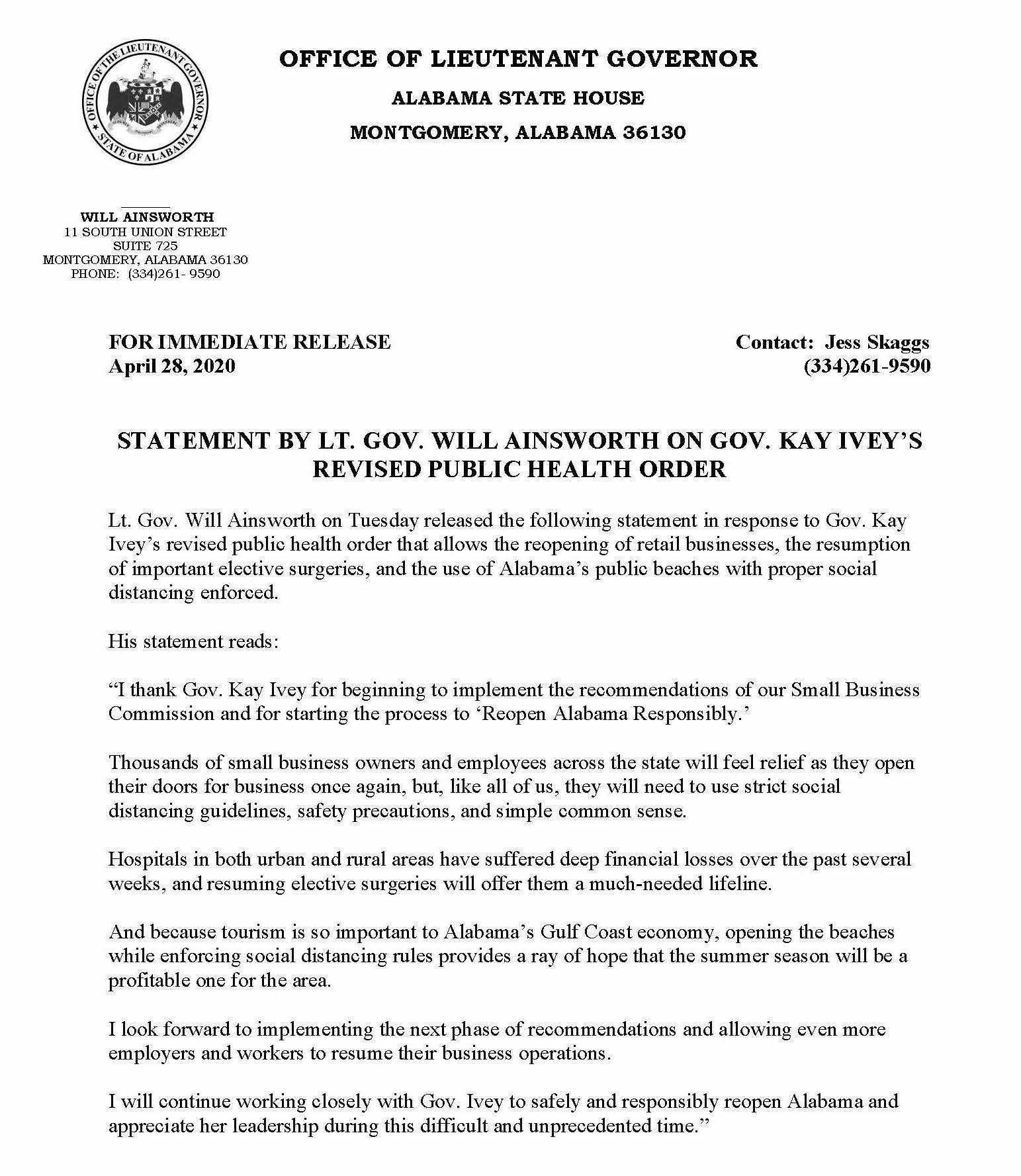 Governor Alabama Will Lift Parts Of Stay At Home Order Thursday