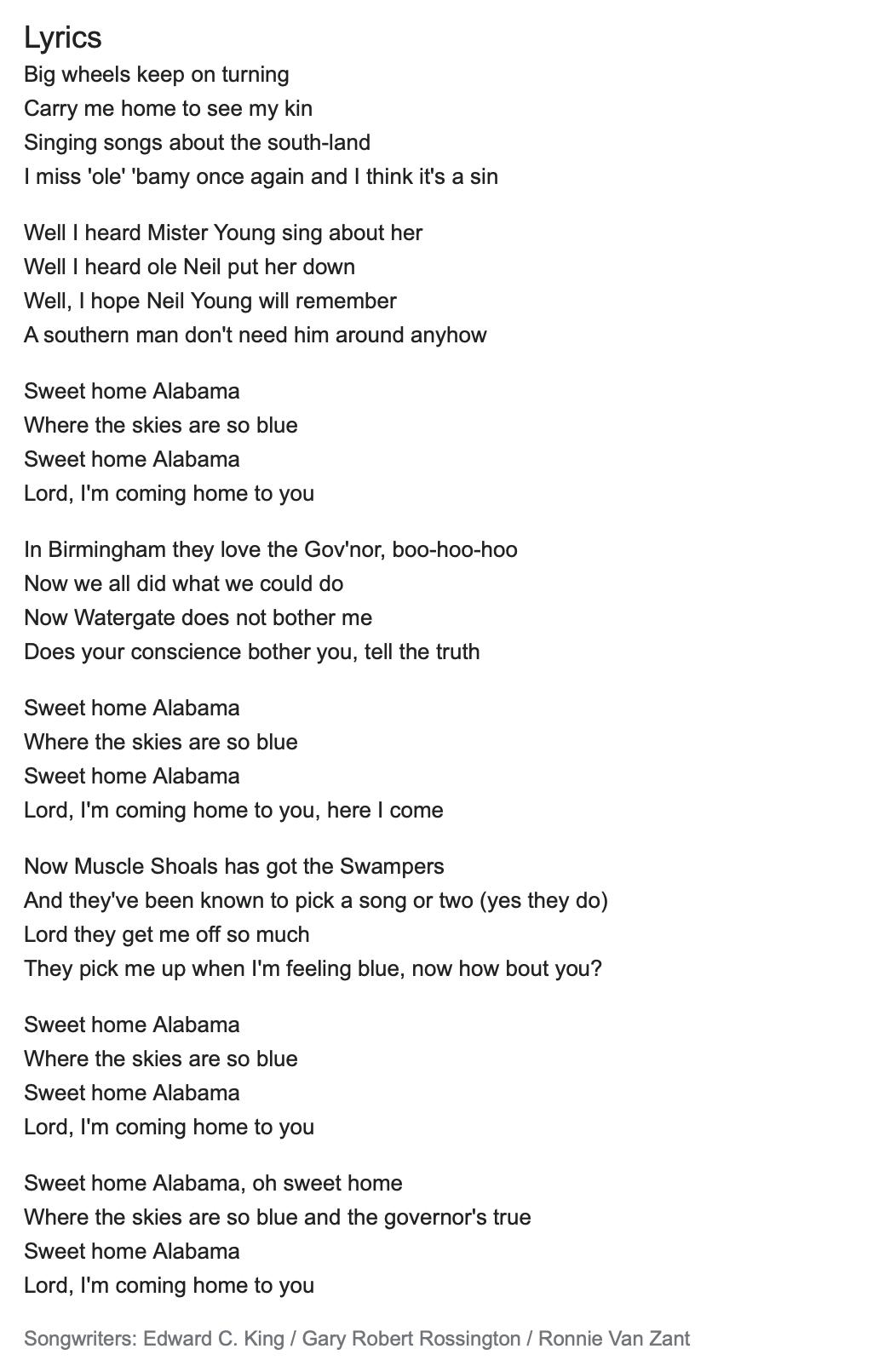 Song Of The South Alabama Lyrics Youtube