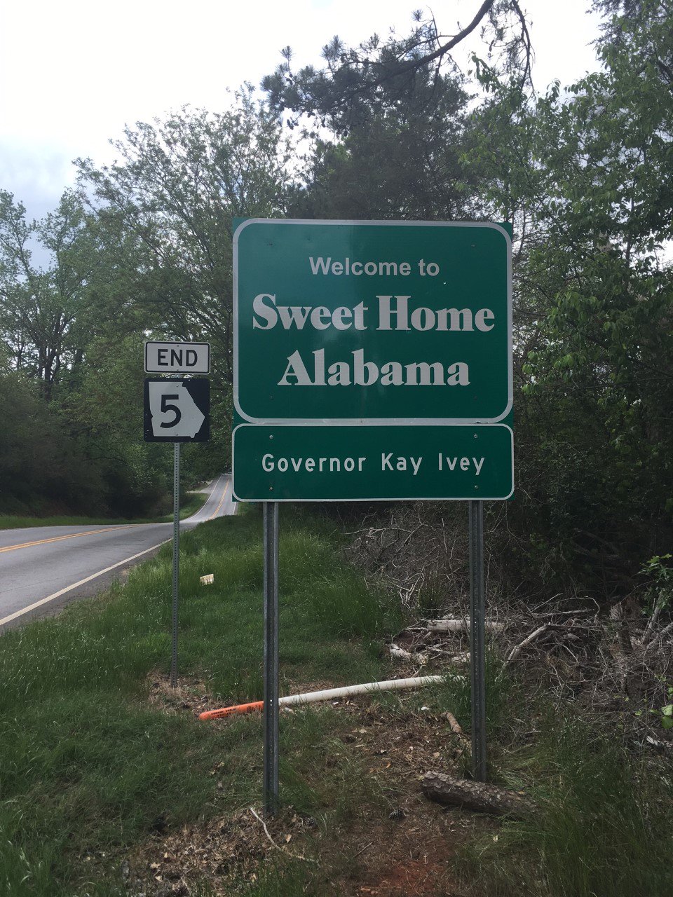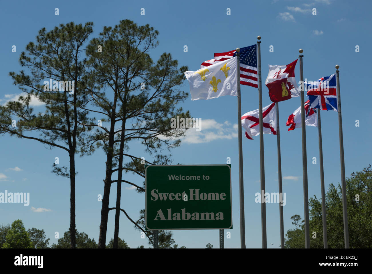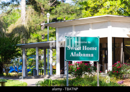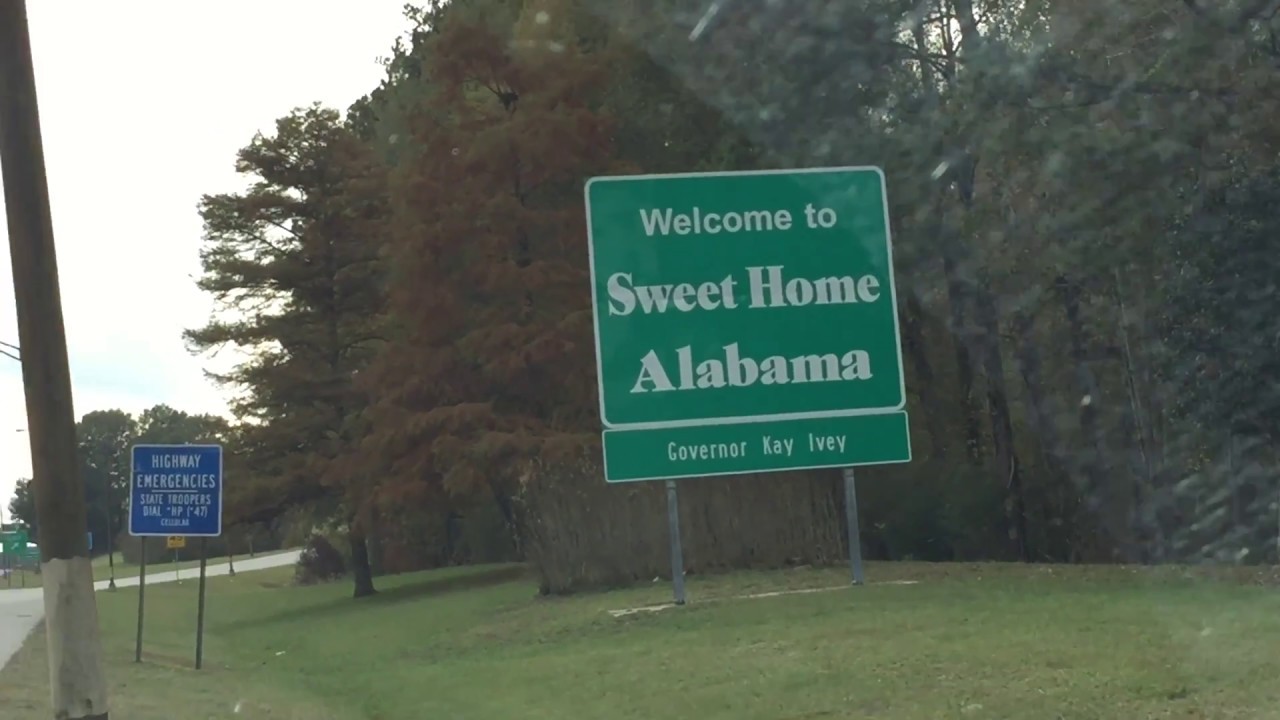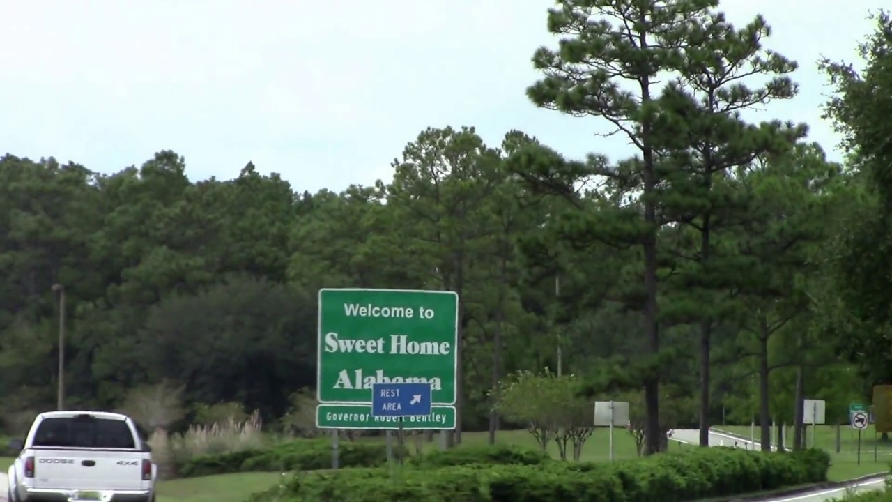 Highway Road In Alabama With Welcome Sign And Text On Street With