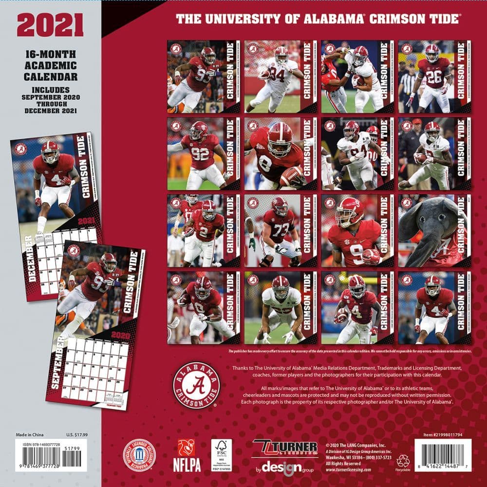 The University Of Alabama Crimson Tide 2020 Calendar Lang